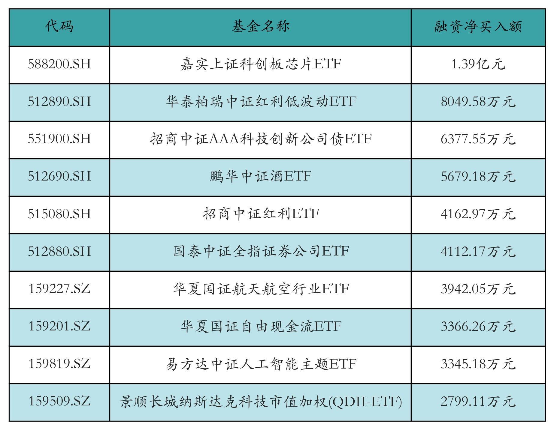 10月24日ETF融资净买入额前三位分别为:嘉实上证科创板芯片ETF(1.39亿元)、华泰柏瑞中证红利低波动ETF(8049.58万元)和招商中证AAA科技创新公司债ETF(6377.55万元),前10具体见下表: